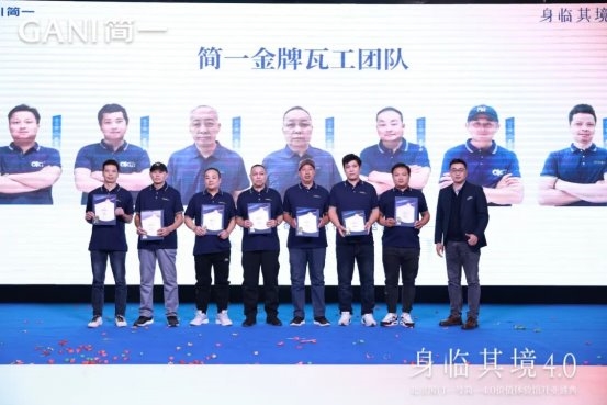 聚光灯下,瓦工师傅们质朴的笑容与手中的荣誉证书交相辉映,现场响起阵阵热烈的掌声。随后,叶先俊师傅作为瓦工代表发言,他用朴实无华的语言分享了从业多年的心得与感悟,道出了简一工匠群体对品质的执着追求。